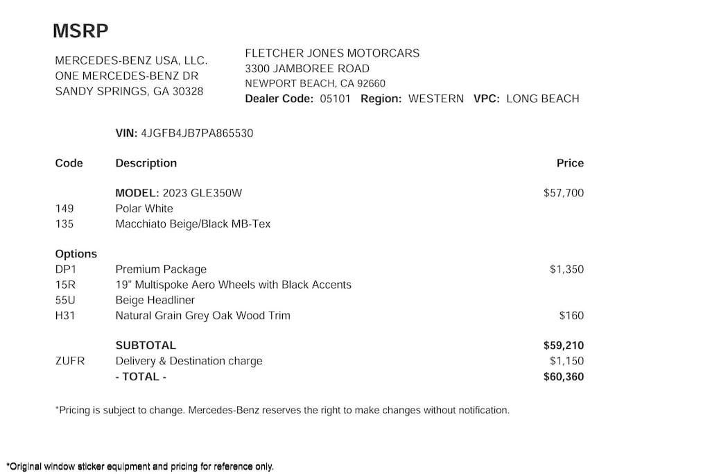 Fletcher Jones Motorcars, the nation’s #1 certified pre-owned Mercedes-Benz sales center, presents this 2023 Mercedes-Benz GLE 350 SUV. This Mercedes-Benz has 35,381 miles and comes in a Polar White on Macchiato/Black color combination. Live out of the area? Contact us to discuss convenient delivery options. (949) 718-3000