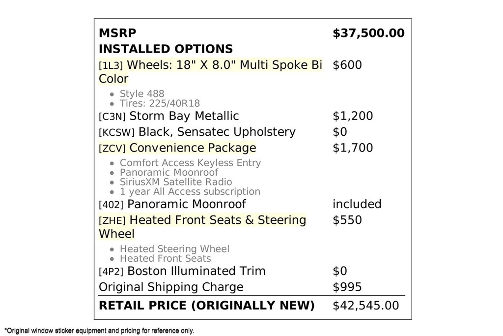 UPGRADED EQUIPMENT: Wheels: 18" X 8.0" Multi Spoke Bi Color, Convenience Package, Panoramic Moonroof, Heated Front Seats & Steering Wheel