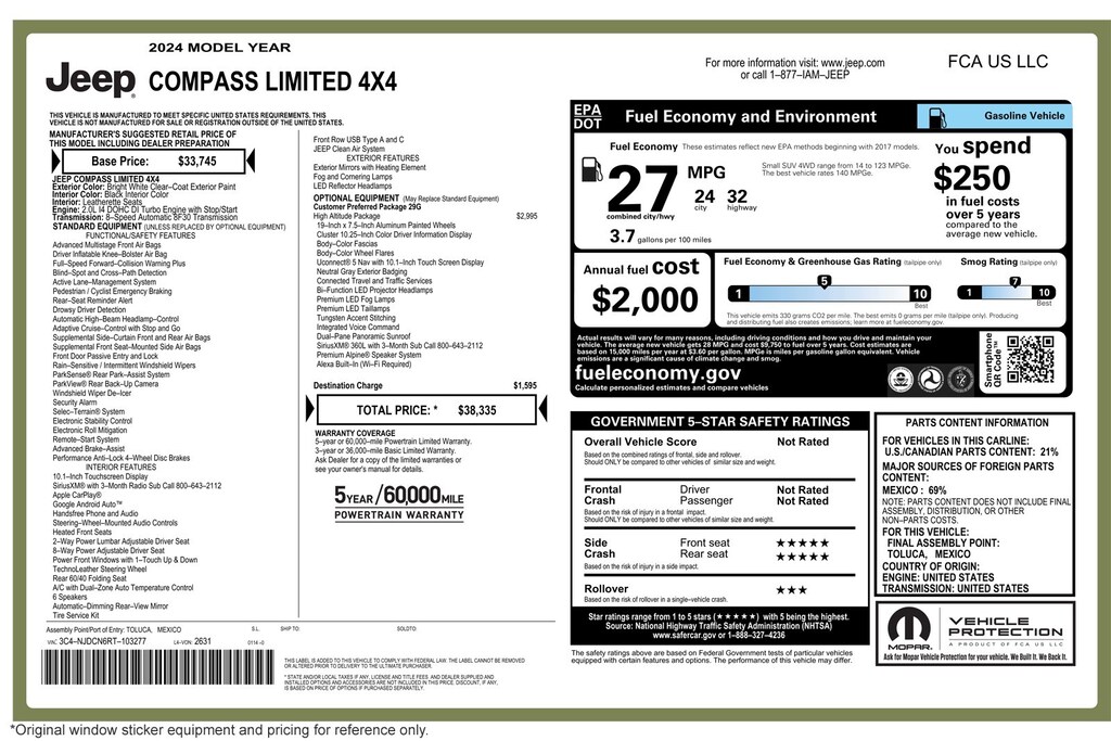 Audi Fletcher Jones presents this 2024 Jeep Compass Limited 4x4. This Jeep has 22,996 miles and comes in a White on BLACK color combination. Live out of the area? Contact us to discuss convenient delivery options. (949) 791-1500