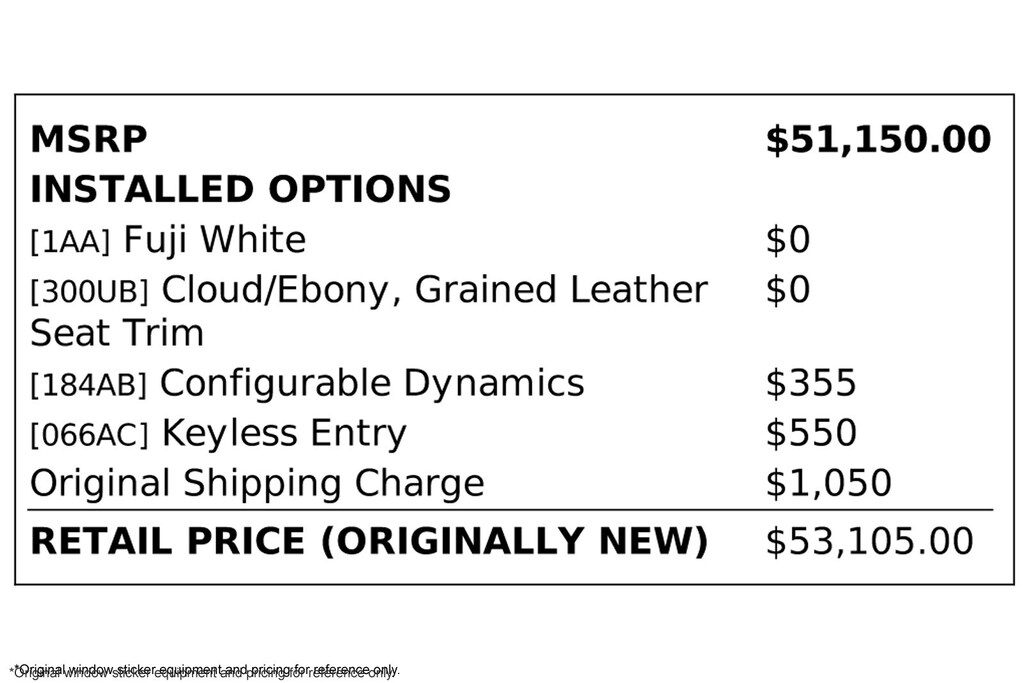 UPGRADED EQUIPMENT: Configurable Dynamics, Keyless Entry