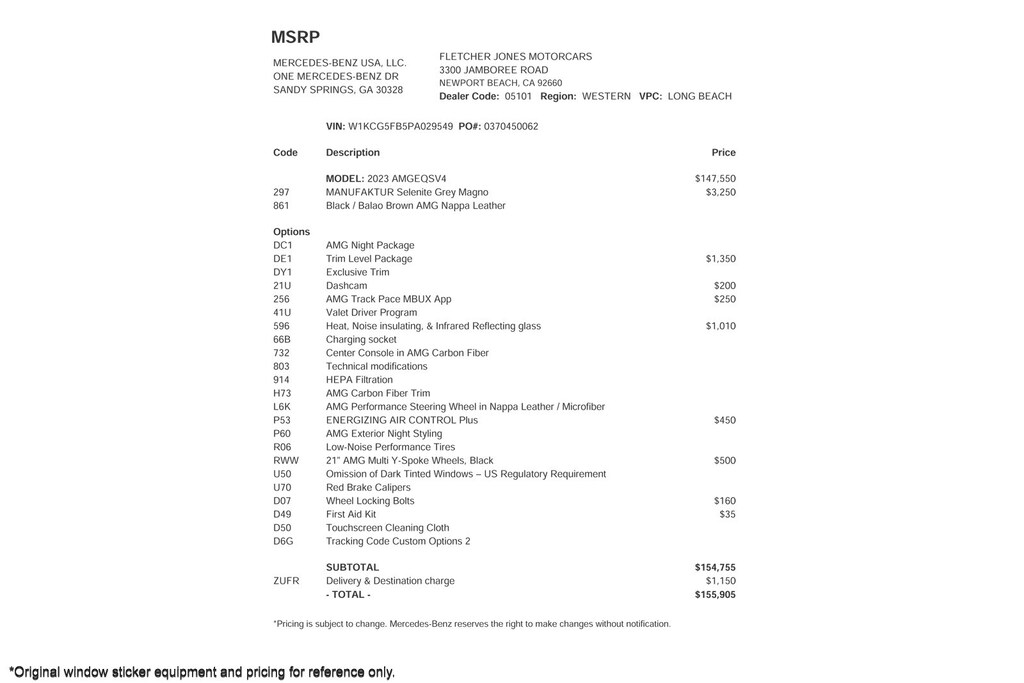 Fletcher Jones Motorcars, the nation’s #1 certified pre-owned Mercedes-Benz sales center, presents this 2023 Mercedes-Benz EQS AMG EQS 4MATIC+ Sedan. This Mercedes-Benz has 6,672 miles and comes in a Manufaktur Selenite Grey Magno on Black/Sable Brown color combination. Live out of the area? Contact us to discuss convenient delivery options. (949) 718-3000