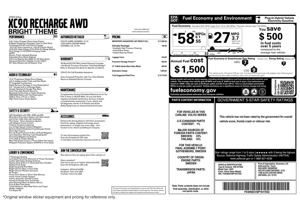 Audi Fletcher Jones presents this 2023 Volvo XC90 Recharge Plug-In Hybrid T8 eAWD PHEV Core Bright Theme 7P. This Volvo has 33,532 miles and comes in a Silver Dawn Metallic color combination. Live out of the area? Contact us to discuss convenient delivery options. (949) 791-1500